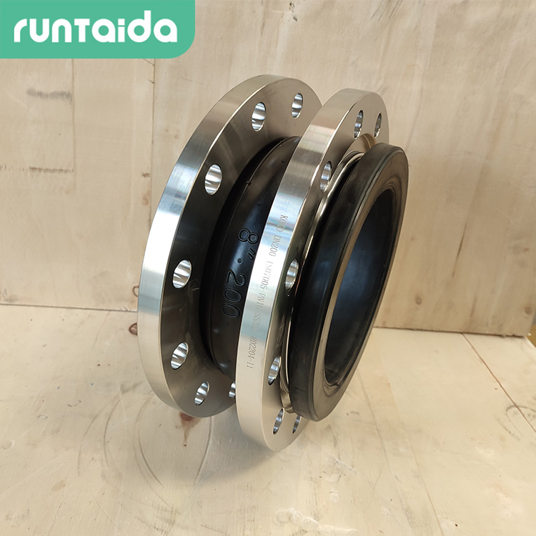 橡膠接頭一般由內膠層、織物增強層(增強層有多層刮膠錦綸簾子布)、中膠層、外膠層、端部加固金屬環或鋼絲圈,經高溫、高壓硫化成型后,與金屬法蘭或平行接頭松套組合而成的復合橡膠管。此產品利用了橡膠的高彈性、高氣性、耐介質性、耐候性和耐輻射性等優點,可降低管道的振動及噪聲,并可對因溫度變化引起的熱脹冷縮起補償作用。